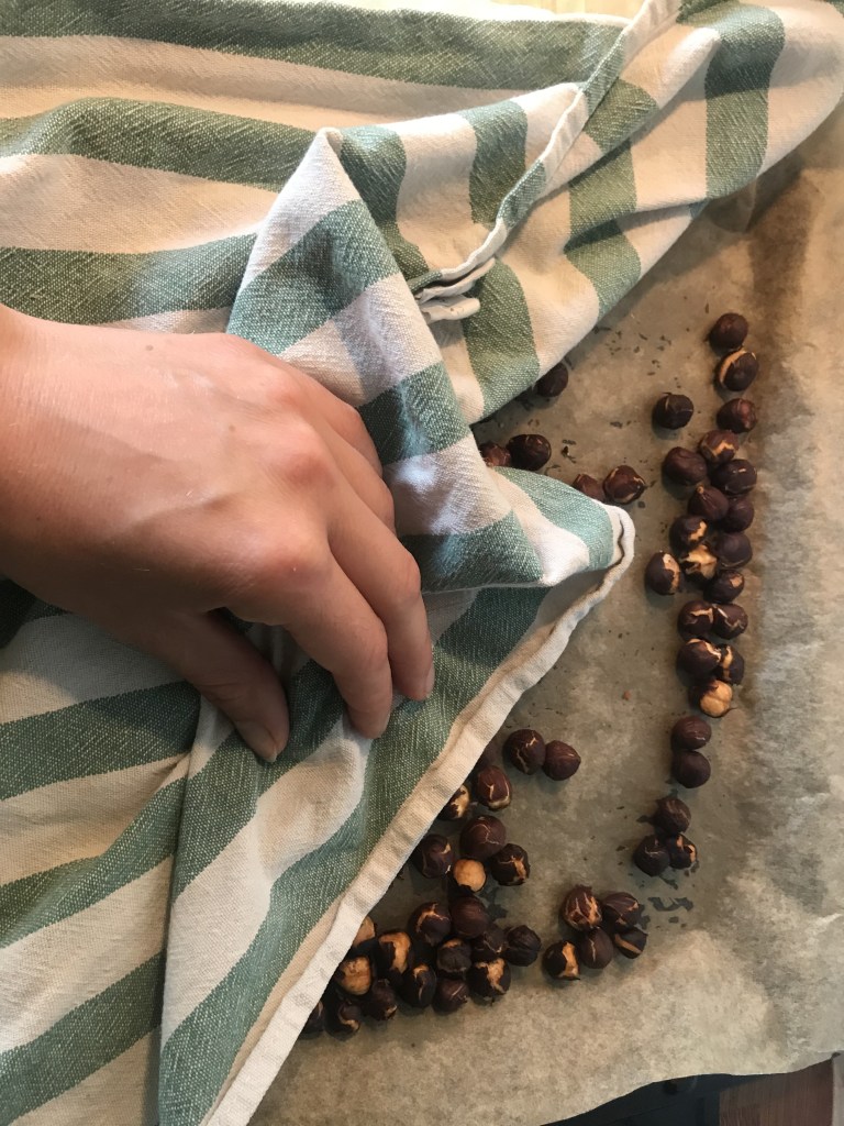 - Bruk et rent kjøkkenhåndkle og gni nøttene mellom henda inni håndkleet. På denne måten faller skallet av (det har ofte bitter smak).